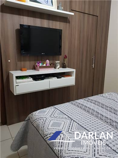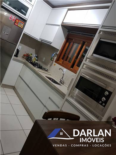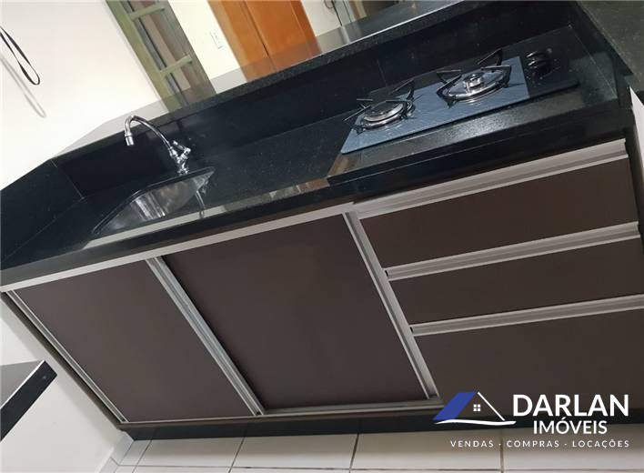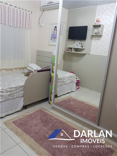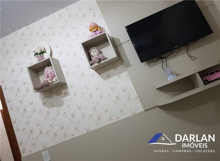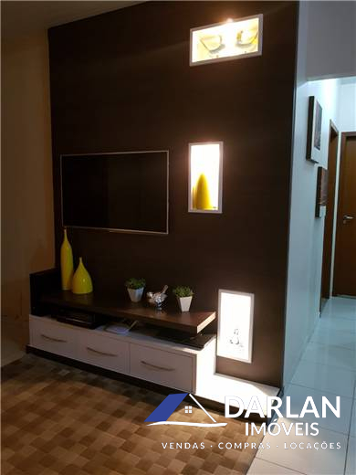 Contém 02 quartos, sendo um com closet, 02 banheiros sociais, cozinha, sala de estar, área de serviço, garagem com churrasqueira. Casa toda mobiliada.