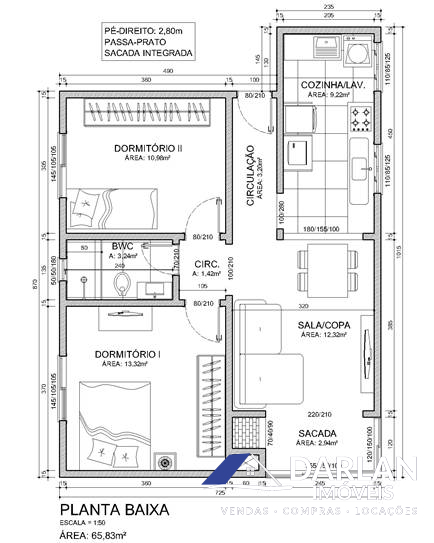?? 67,50m² de área privativa, distribuídos em: