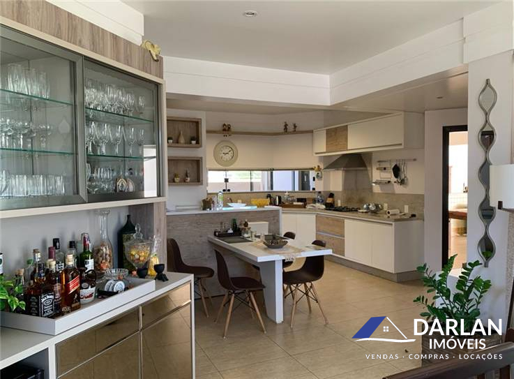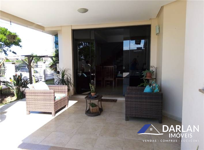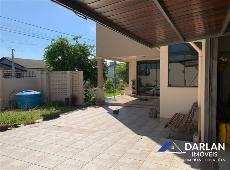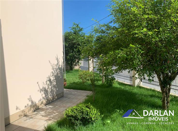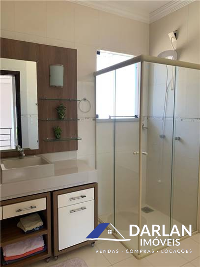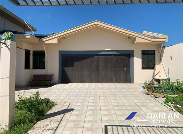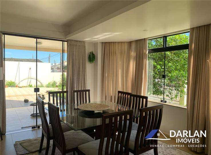 Casa alto padrão com 375 m2, porcelanato, laje inclinada, teto rebaixado com gesso. 5 quartos, sendo 2 suítes (suíte master com hidromassagem), 1 banheiro social, 2 lavabos, sala de estar com lareira, sala de jantar e cozinha conjugadas, 2 despensas e área de serviço. Espaço gourmet com churrasqueira, fritadeira e fogão a lenha. Garagem fechada pra 3 carros. Terreno 16x35 m. Aquecimento solar, espaço pra piscina. Ficam todos móveis sob medida.