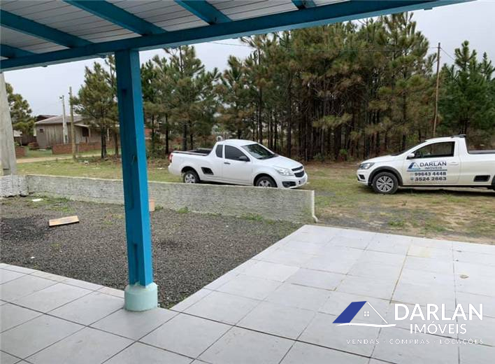 Casa mista com 3 quartos, sala e cozinha conjugadas, banheiro social e abrigo para dois carros.