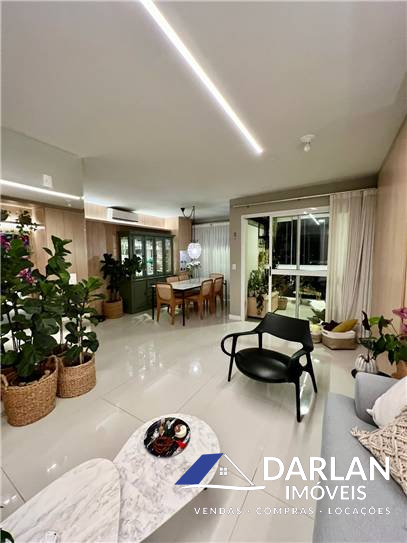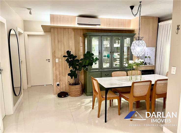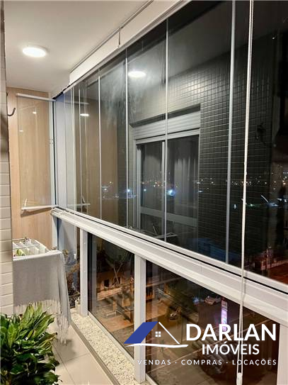 Duas suítes, sendo uma master, ambas com sacada privativa, Amplo living que integra sala de tv e sala de jantar, que conta com lavabo com armarios de utilidades, cozinha americana integrada, lavanderia. sacada principal das salas com fechamento reiki e churrasqueira embutida no móvel.
