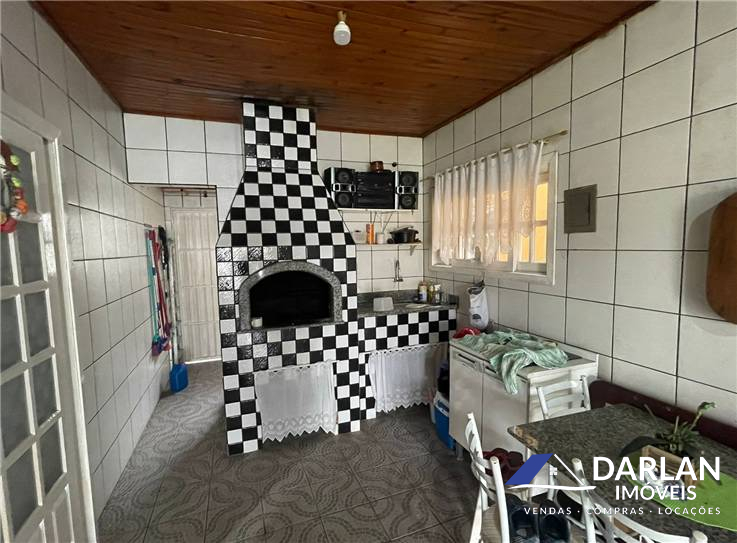 03 dormitórios, cozinha, banheiro social, sala de estar, área de serviço, garagem para um carro com churrasqueira.