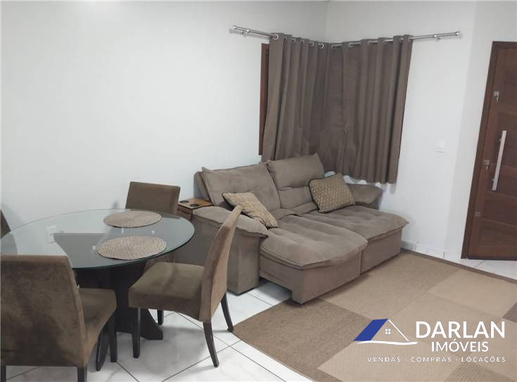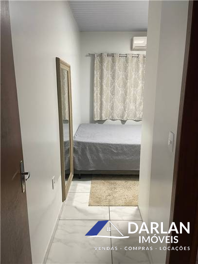 Casa com dois quartos, sendo uma suíte, sala e cozinha conjugada, área serviço, edícula com um deposito, banheiro, churrasqueira e garagem. Ficam todos os moveis sob medida e alguns eletros e moveis soltos.