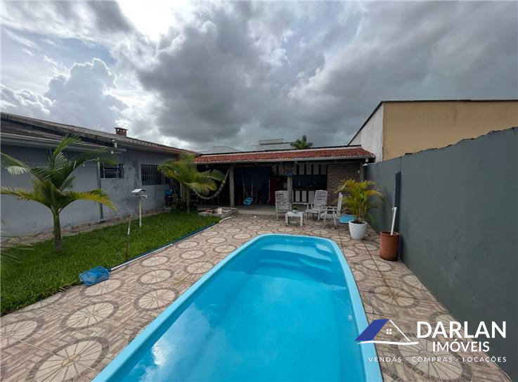 Casa com 5 quartos, sendo um suíte, 3 banheiros, sala de jantar, jardim coberto, salão de festa com cozinha e banheiro, piscina , garagem para 3 carros.