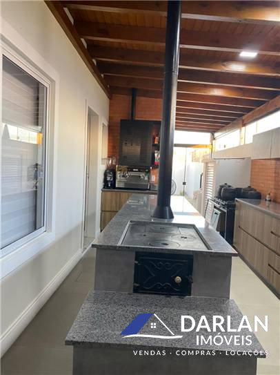 Casa loteamento Açores, frente Oeste, com 3 quartos, sendo uma suíte com close, área de serviço, banheiro social, sala e cozinha conjugadas, 2 vagas de garagem, área gourmet com fogão a lenha e churrasqueira america, Fica toda mobiliada.