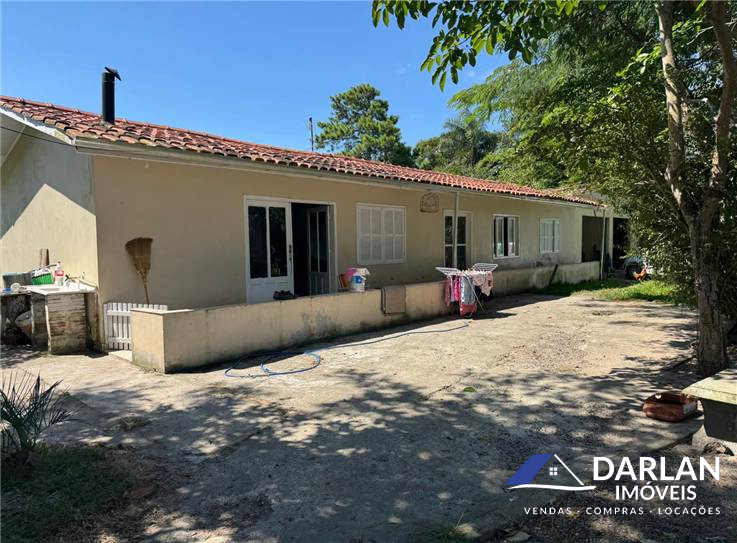 Uma casa de parede dupla, com dois quartos, sala, cozinha e banheiro social e uma casa de alvenaria com dois quartos, cozinha com fogão a lenha e duas vagas de garagem, um banheiro. Varias arvores frutíferas e açude.