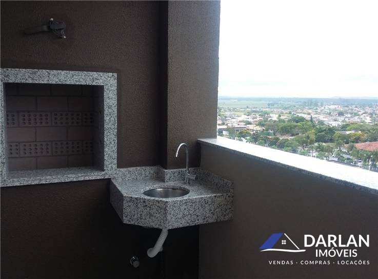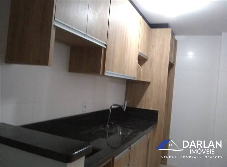 Apto de dois quartos, sendo uma suíte, sala, cozinha, área de serviço e garagem, fica moveis de cozinha e banheiro, sacada com churrasqueira.