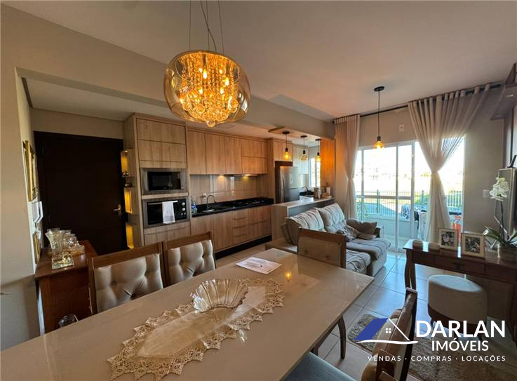 Apto de frente, com dois quartos, sala e cozinha conjugado, lavanderia, sacada, banheiro social e uma vaga de estacionamento.