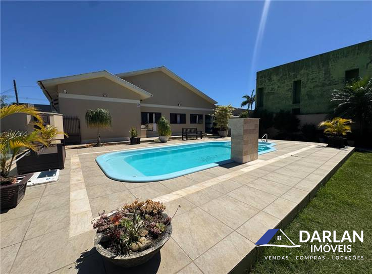 Casa de laje com 3 quartos, sendo uma suíte com banheira, sala, cozinha, banheiro social, lavanderia, área gourmet com churrasqueira, fogão a lenha, piscina, aquecimento a gás, garagem para dois carros. Moveis sob medida, ficam no imóvel.