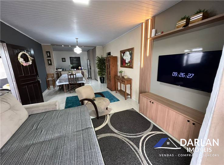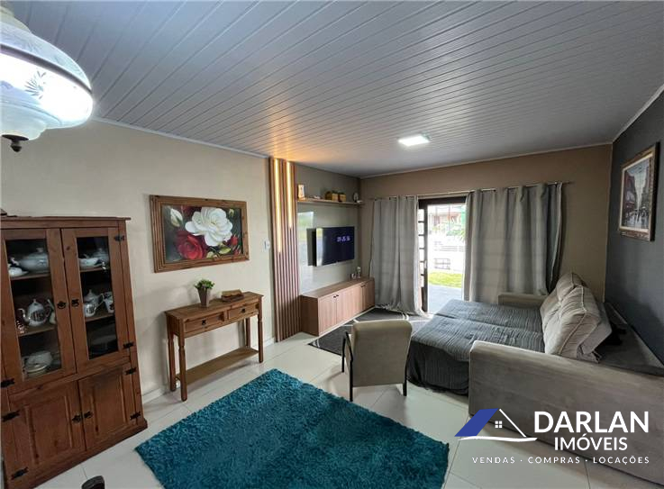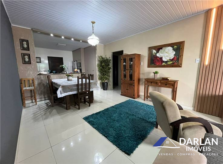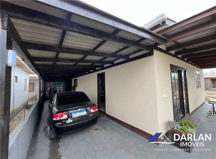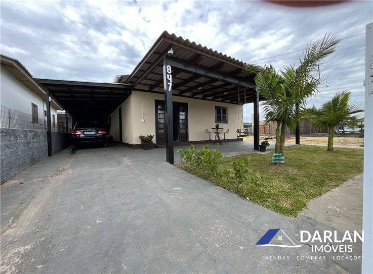 Casa com dois quartos, sendo um com close, sala e cozinha conjugada, edicula com churrasqueira e abrigo para dois carros, posição solar norte.
