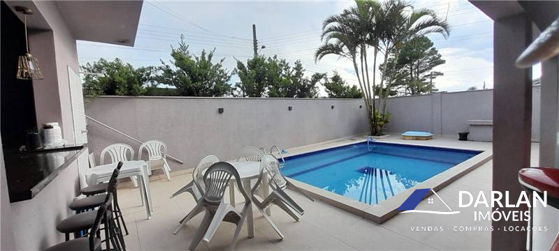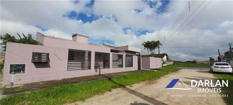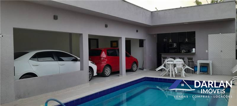Casa de esquina, com dois quartos, dois banheiros, sala e cozinha conjugada, área gourmet, piscina, garagem para dois carros.