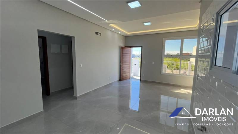 02 dormitórios, sendo um suíte Sala de estar e cozinha integradas Lavanderia Garagem para 02 carros Espera para ar condicionado Casa em meio lote