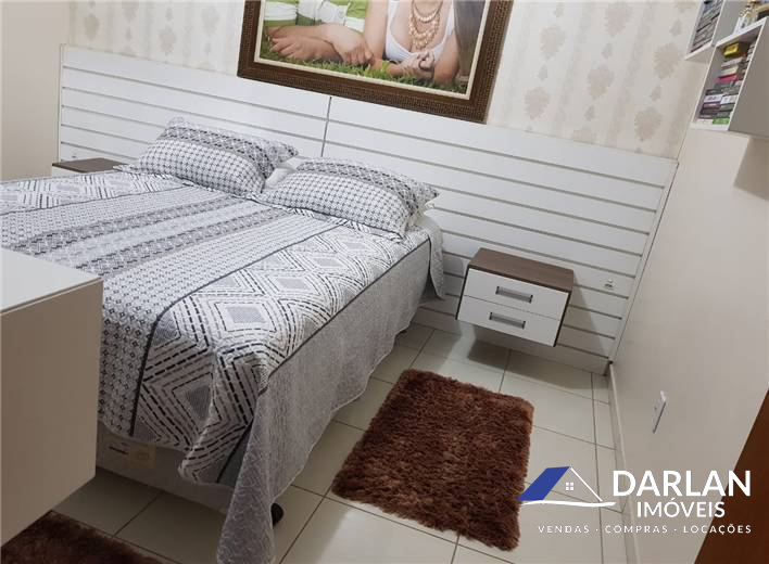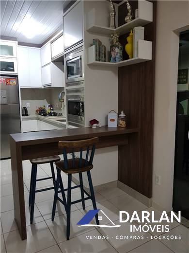 Contém 02 quartos, sendo um com closet, 02 banheiros sociais, cozinha, sala de estar, área de serviço, garagem com churrasqueira. Casa toda mobiliada.