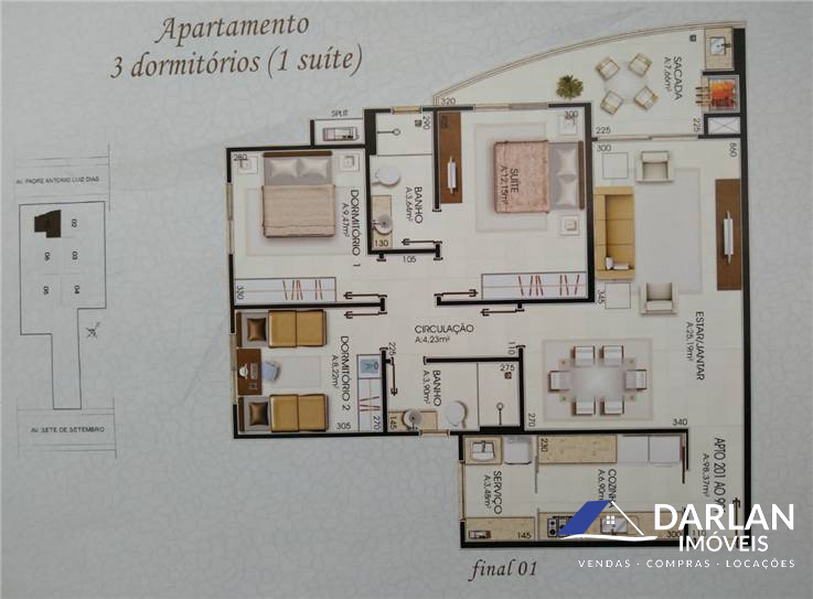 Apartamento de 2 quartos + 1 Suite