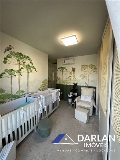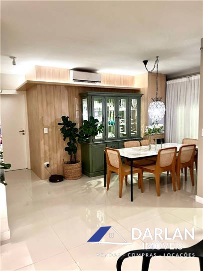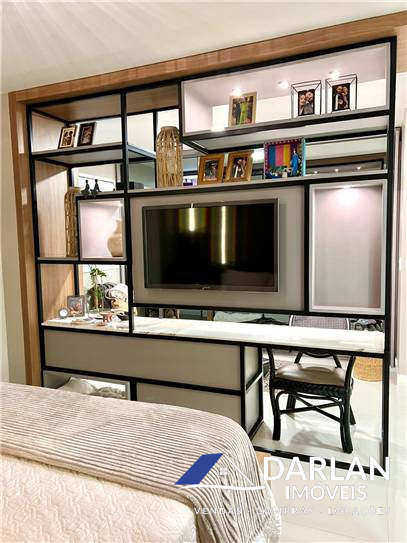 Duas suítes, sendo uma master, ambas com sacada privativa, Amplo living que integra sala de tv e sala de jantar, que conta com lavabo com armarios de utilidades, cozinha americana integrada, lavanderia. sacada principal das salas com fechamento reiki e churrasqueira embutida no móvel.