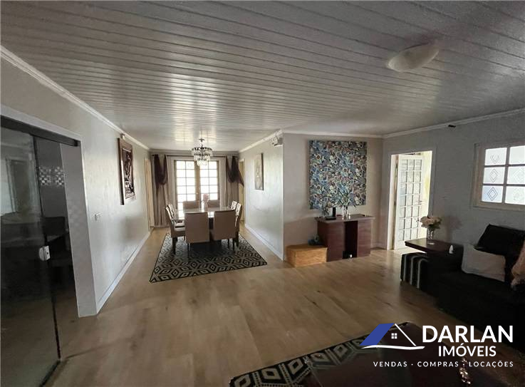 Casa com 5 quartos, sendo um suíte, 3 banheiros, sala de jantar, jardim coberto, salão de festa com cozinha e banheiro, piscina , garagem para 3 carros.