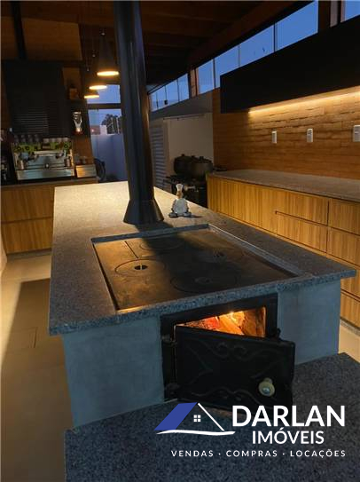 Casa loteamento Açores, frente Oeste, com 3 quartos, sendo uma suíte com close, área de serviço, banheiro social, sala e cozinha conjugadas, 2 vagas de garagem, área gourmet com fogão a lenha e churrasqueira america, Fica toda mobiliada.