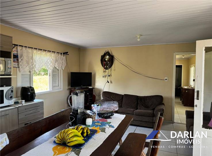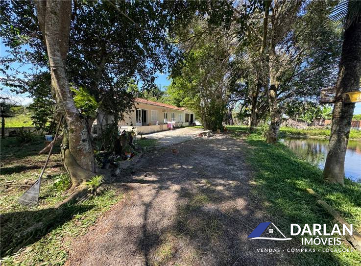 Uma casa de parede dupla, com dois quartos, sala, cozinha e banheiro social e uma casa de alvenaria com dois quartos, cozinha com fogão a lenha e duas vagas de garagem, um banheiro. Varias arvores frutíferas e açude.