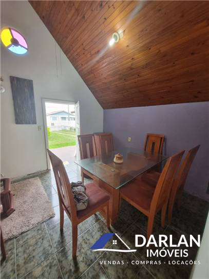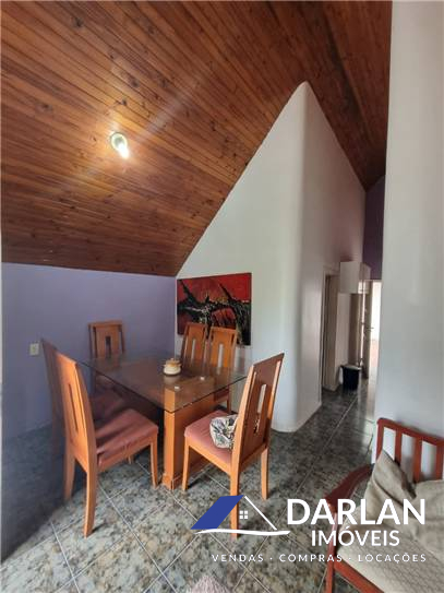 Casa de dois pisos, sendo o primeiro com sala de jantar e estar, cozinha, área de serviço, e garagem coberta, segundo piso com banheiro social, quatro quartos, sendo duas suítes com varanda. Possui um chalé em alvenaria com cozinha, banheiro social, um dormitorio, sala de jantar e estar, ficam mobilia e eletros.