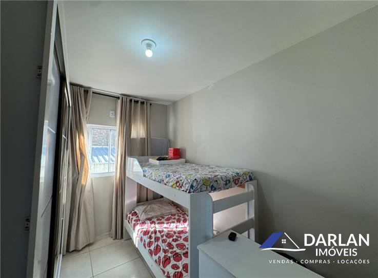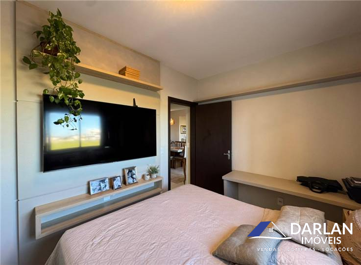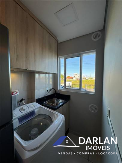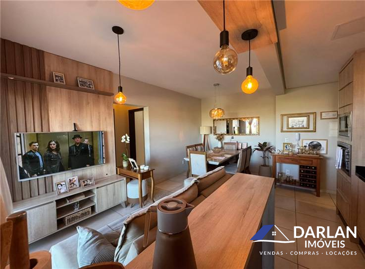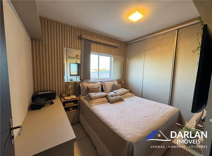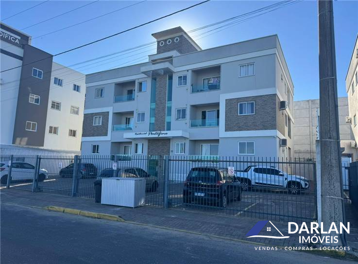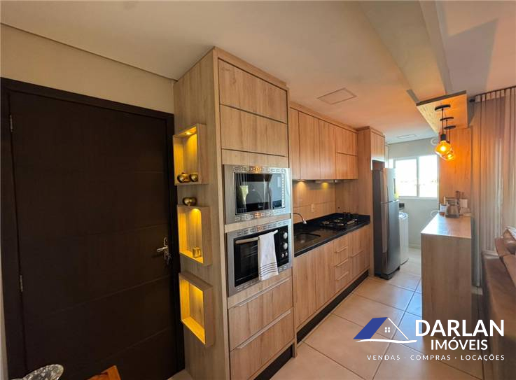 Apto de frente, com dois quartos, sala e cozinha conjugado, lavanderia, sacada, banheiro social e uma vaga de estacionamento.