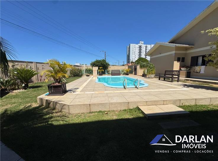 Casa de laje com 3 quartos, sendo uma suíte com banheira, sala, cozinha, banheiro social, lavanderia, área gourmet com churrasqueira, fogão a lenha, piscina, aquecimento a gás, garagem para dois carros. Moveis sob medida, ficam no imóvel.
