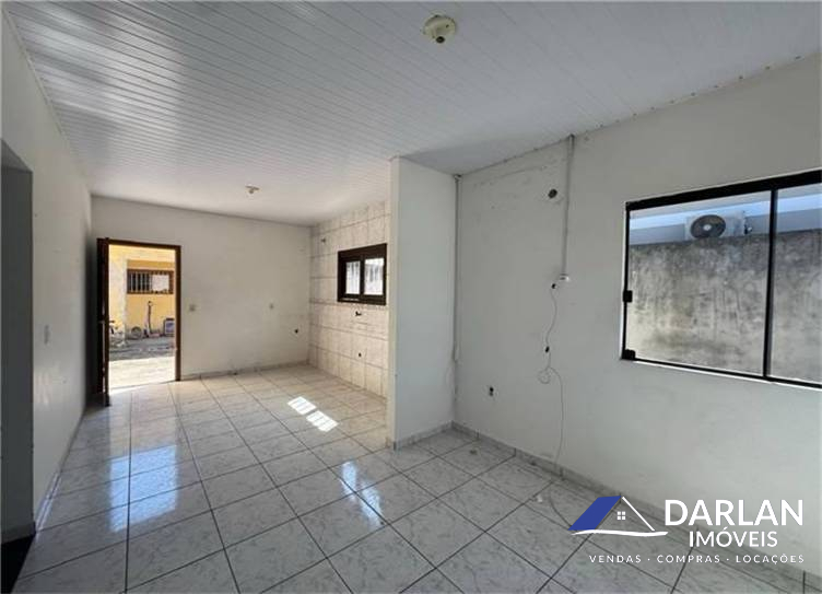 Casa de dois quartos, sala e cozinha conjugadas, área de serviço, edicula com garagem, banheiro e deposito.