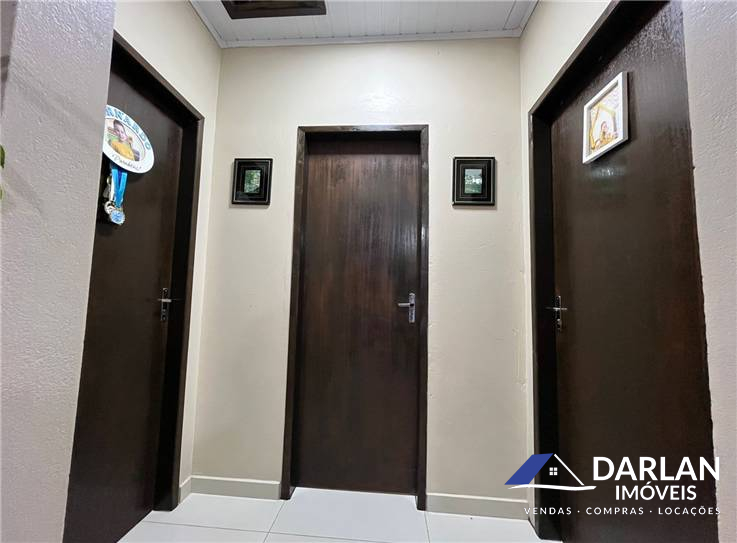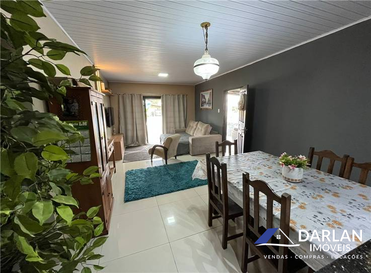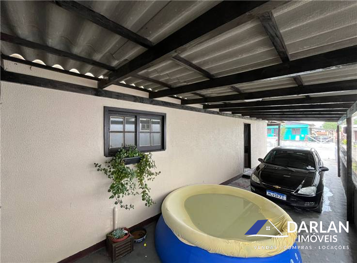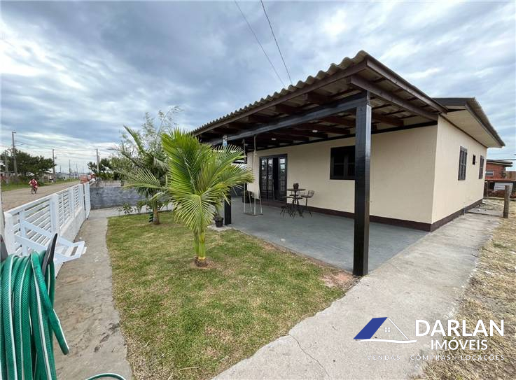Casa com dois quartos, sendo um com close, sala e cozinha conjugada, edicula com churrasqueira e abrigo para dois carros, posição solar norte.