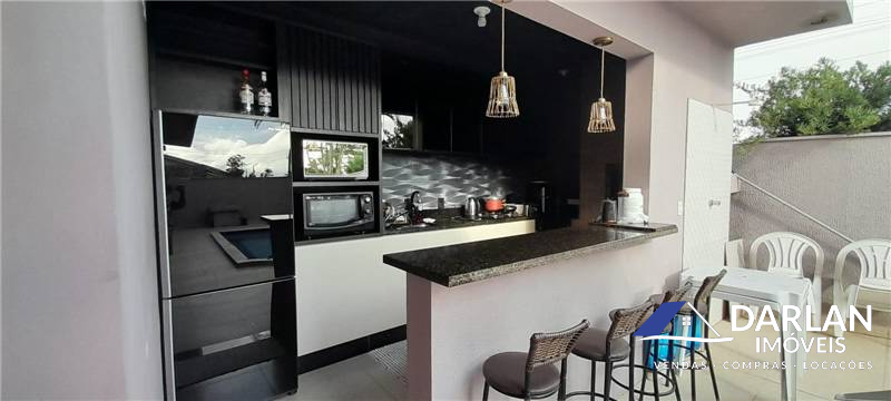 Casa de esquina, com dois quartos, dois banheiros, sala e cozinha conjugada, área gourmet, piscina, garagem para dois carros.