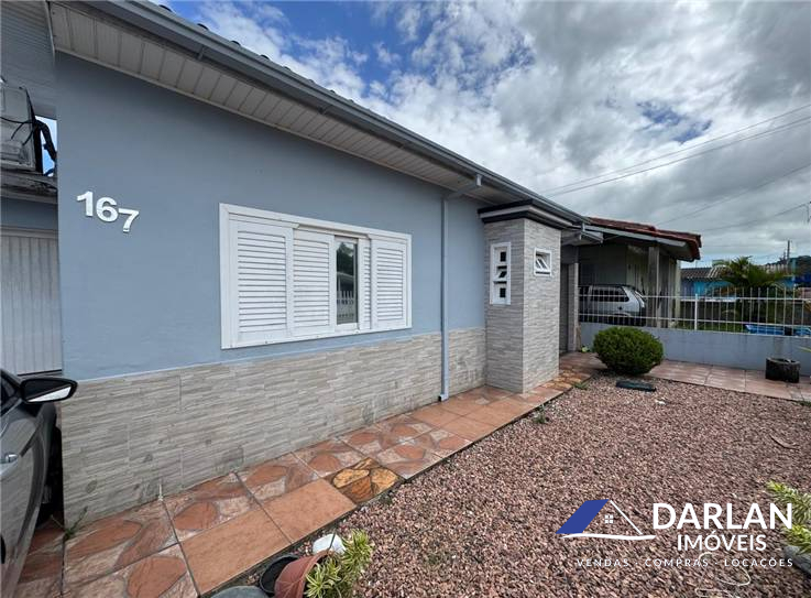 Casa de 3 quartos, sendo uma suíte, sala e cozinha conjugada, banheiro social e garagem, nos fundos deposito e lavanderia.
