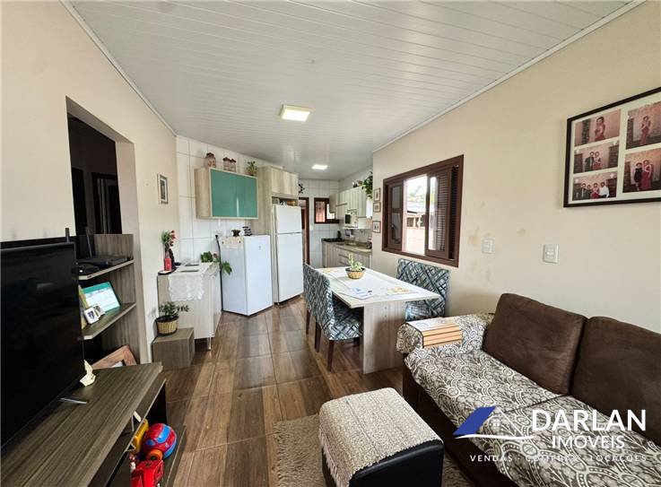 Casa frente leste, com 3 quartos, sendo uma suíte, sala e cozinha conjugadas, área de serviço, banheiro social e garagem, pátio com várias arvores frutiferas.